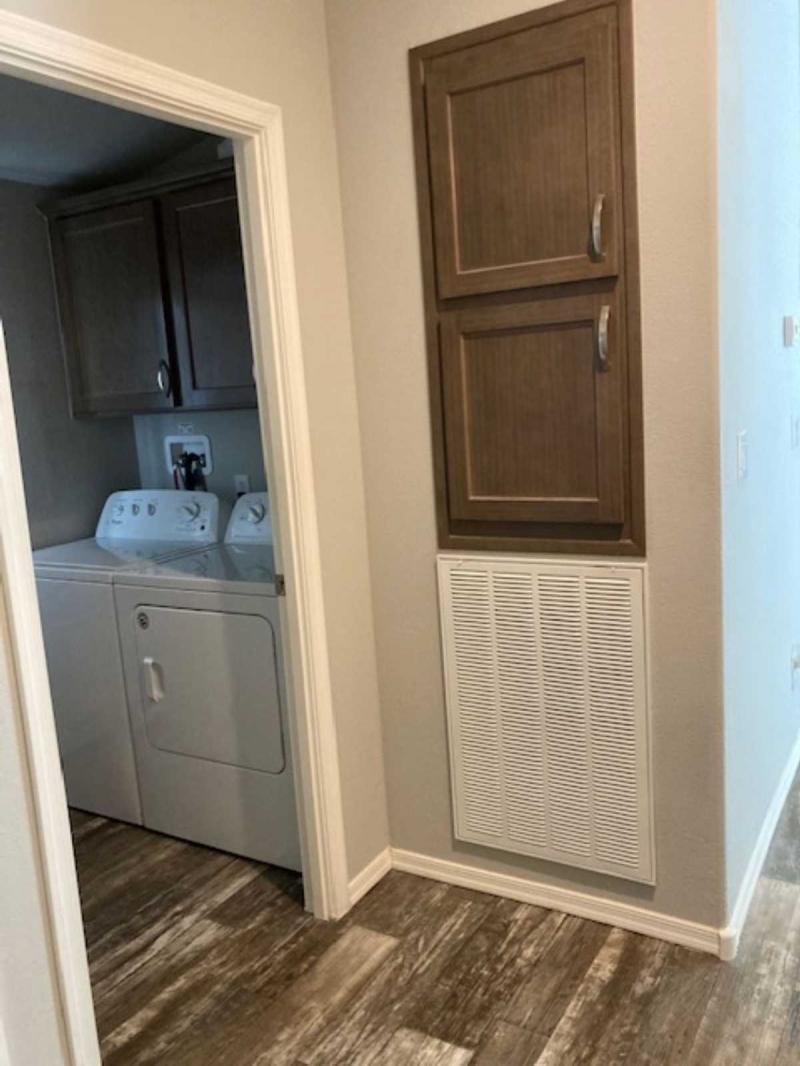 This newer beautifully maintained 2 bedroom/2 bath house is a MUST SEE! This home has an open concept floor plan from the living room to the kitchen. The kitchen has a large Island giving you extra counter space. The Master bath has a double vanity and walk in shower. The Master bedroom has a walk in closet with shelving. There is a separate laundry room for the washer and dryer. This home comes with all of the appliances including dishwasher, microwave, refrigerator, stove, washer, dryer and central air. The exterior of this home features a covered porch, carport and a shed for extra storage. This home sits on a corner site with a great view of the mountains. Call us today to schedule your personal tour of this home and community. We look forward to hearing from you! Discover, Visa, Mastercard, and AMEX are now accepted at this location, some restrictions apply. Contact the sales office for details. Price is subject to change without notice. Qualified buyers may receive financing thru 3rd party lenders.